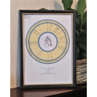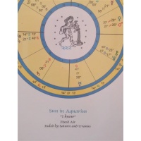 The chart is printed on white A4 card with a yellow/blue chart and Aquarius Water Bearer in the centre.