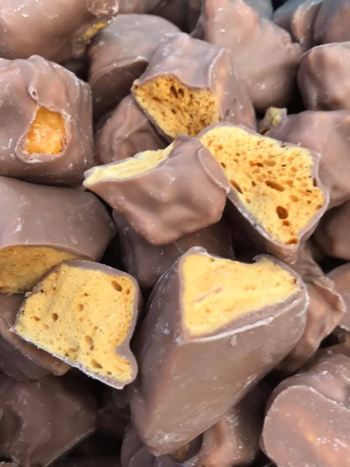 CHOCOLATE COVERED HONEYCOMBE 200gWe are a small family business established in 1989, using the finest raw ingredients go into making our fudge.we are able to make almost any variety of fudge our customers require , and can supply retail and wholesale customers alike.Also we have won several awards over the years for both the quality of our fudge along with our display and presentation, and we pride ourselves on our customer relationsIngredientsstandard Dairy fudge , sugar, cake marg, conden...