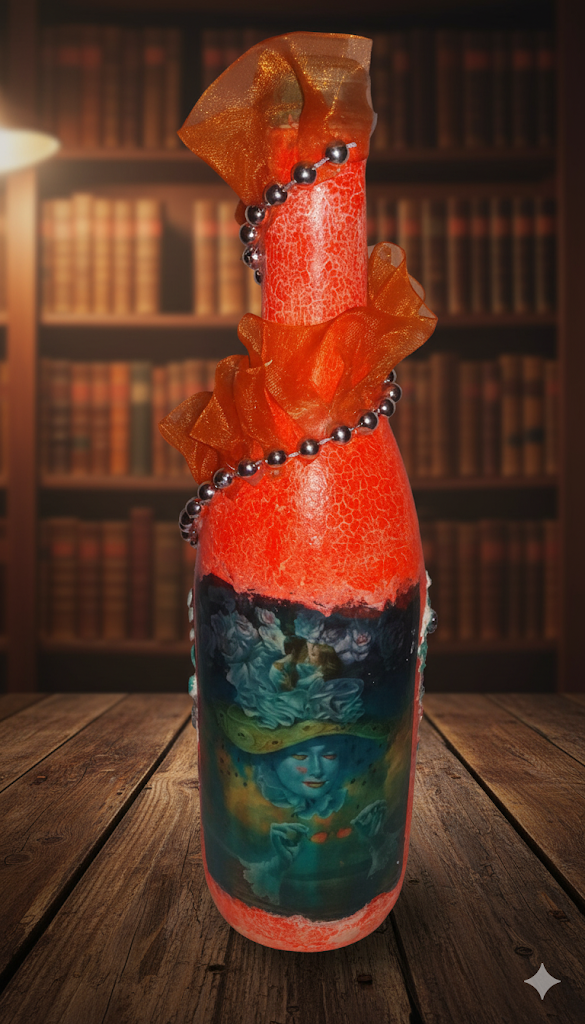 Introducing the "Love is Blind" Decoupage Bottle – a mesmerizing work of