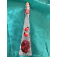 This unique glass pyramid-shaped bottle, with a natural cork stopper, is decorated with sparkling red rhinestones and charming ladybugs – symbols of joy, love, and good fortune. It’s not just a bottle, but a jewel for your space, able to hold: