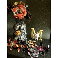 bringing a touch of vintage elegance. Adorned with three handcrafted pink and